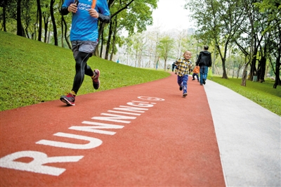 天河公园拆围透绿打造出一条1430米的缓跑径。羊城晚报记者 梁喻 摄
