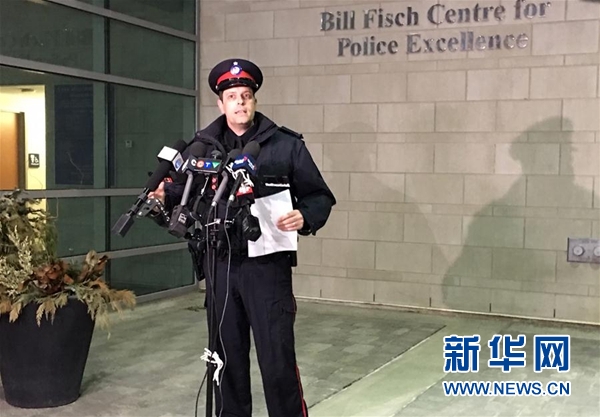 3月26日,加拿大多伦多约克区警方人员出席新闻发布会。 加拿大警方26日说,警方当天在安大略省多伦多市逮捕了一名涉嫌参与23日绑架一名中国留学生的男子。中国驻多伦多总领馆26日晚发布消息,确认加拿大警方已经找到日前被绑架的中国留学生。 新华社发(李海涛 摄)
