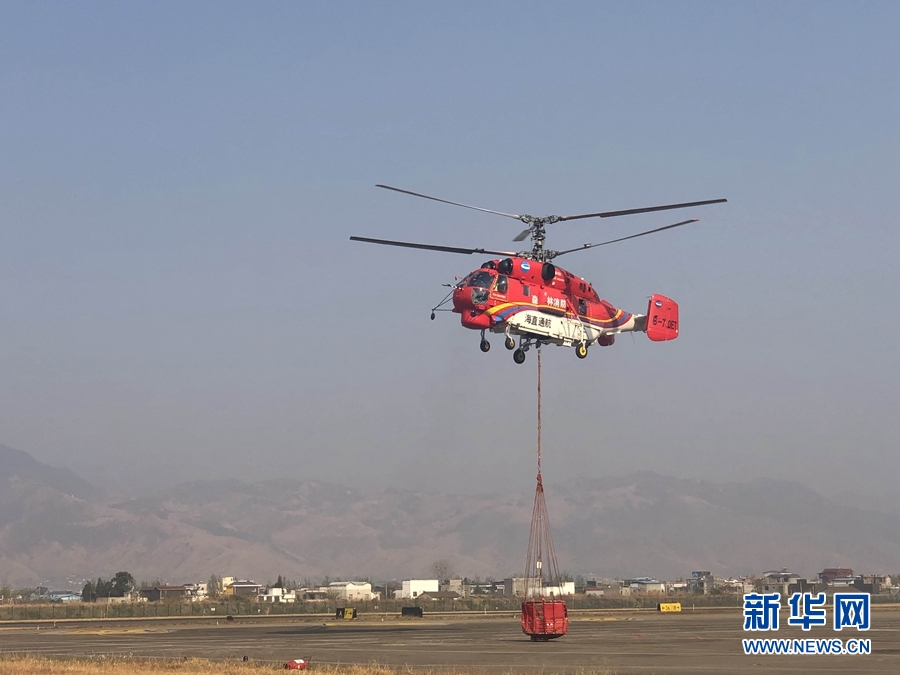 4月1日,灭火直升机从西昌机场起飞。新华社发(林继平 摄)