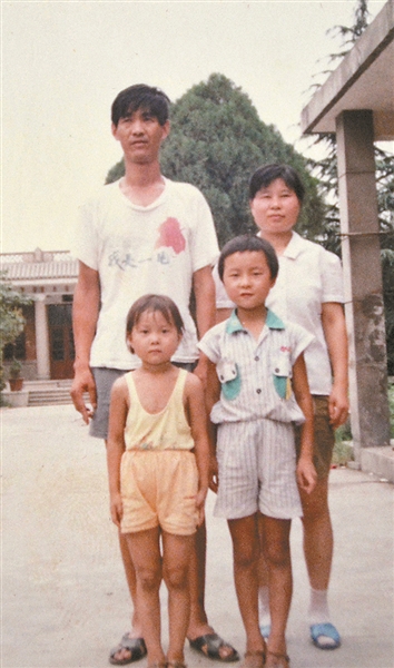 1993年,张顺京一家四口在陵园门口合影(图片由张顺京儿子张盘石提供)。