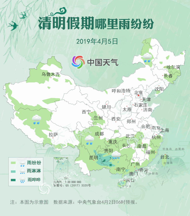 清明小长假期间(5日-7日),我国中东部将会迎来一轮冷空气,东北、华北以及黄淮等地将出现大风降温天气,局地降幅可能达10℃以上;南方清明假期降雨范围明显减少,强度整体不强,主要是在西南地区东部以及华南一带还会有小到中雨。