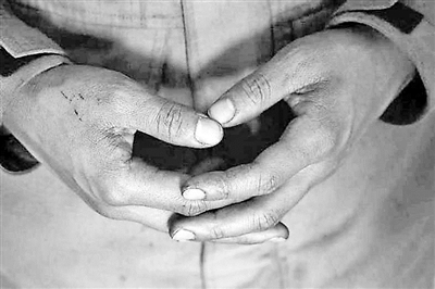胡显禄手上的黑色印迹洗了几次也无法去除