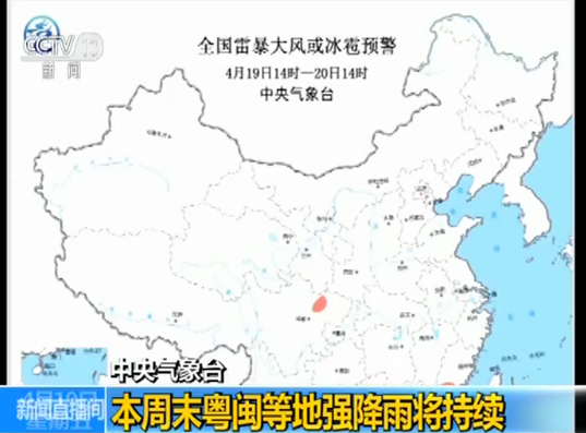 从昨天(18日)开始,我国南方地区强降雨和强对流天气再度来袭,中央气象台预计,今天(19日),四川盆地、广东、福建等地部分地区雨势仍然较强,有大到暴雨、局地大暴雨。