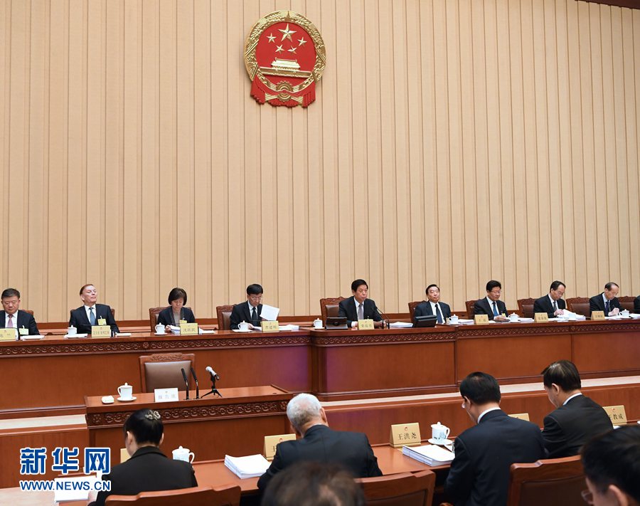4月20日,十三届全国人大常委会第十次会议在北京人民大会堂举行第一次全体会议。栗战书委员长主持会议。 新华社记者 饶爱民 摄