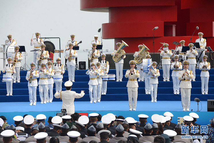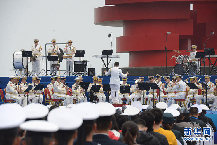 4月22日,中外海军联合军乐展示现场。新华网记者 陈竞超 摄