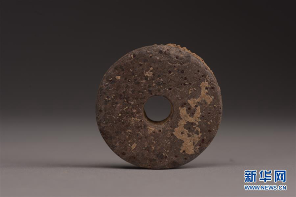 是河南巩义双槐树遗址出土的纺轮(资料照片)。新华社发(郑州市文物考古研究院提供)
