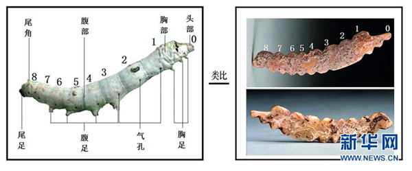 这是河南巩义双槐树遗址出土的牙雕蚕与现代家蚕的比对图(资料照片)。新华社发(郑州市文物考古研究院提供)