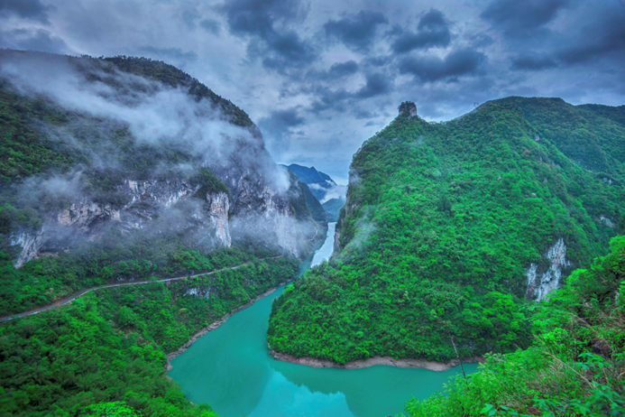 两岸高山绝壁 峡谷深邃莫测 景色壮美