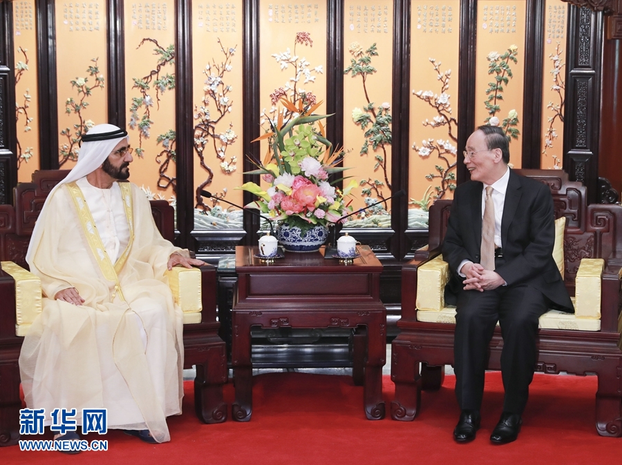 新华社北京4月26日电(记者温馨)国家副主席王岐山26日在钓鱼台国宾馆会见阿联酋副总统兼总理、迪拜酋长穆罕默德。