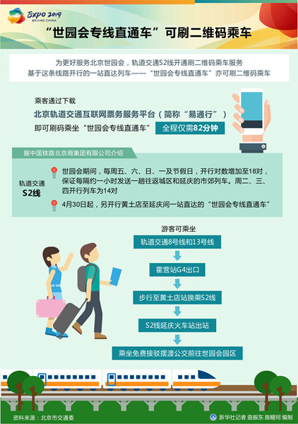 图表:“世园会专线直通车”可刷二维码乘车 新华社记者 曲振东 施鳗珂 编制