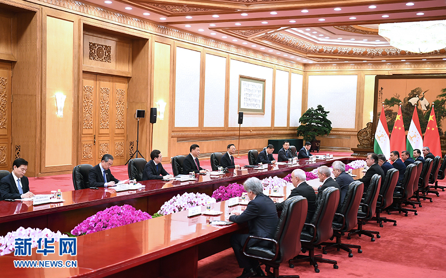 习近平指出,中方坚定支持拉赫蒙总统着眼塔吉克斯坦国家发展和民生福祉所执行的内外政策,愿同塔方加强合作,维护好两国共同的战略、安全、发展权益。双方要深化共建“一带一路”倡议同塔吉克斯坦2030年前国家发展战略对接,加强贸易、投资、金融、互联互通、人文、安全等领域合作。要提升口岸通关、运输能力,为两国扩大贸易提供便利条件。中方鼓励有实力的中国企业赴塔吉克斯坦投资兴业,助力塔方工业化进程。双方要共同办好塔吉克斯坦文化节。中方愿同塔方加强上海合作组织内协调,落实好青岛峰会成果。中方支持塔方办好今年亚洲相互协作与信任措施会议峰会,不断提升亚信整体合作水平。