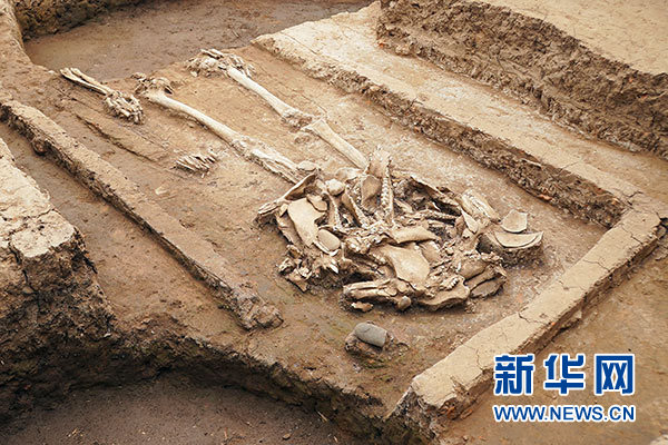 这是黄山遗址发现的疑似屈家岭文化氏族首领的高等级墓葬(4月29日摄)。 新华社记者 袁月明 摄