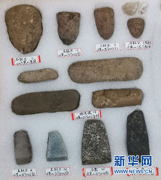 这是黄山遗址发掘出土的石钻头、石凿、抛光器等制玉工具(4月29日摄)。新华社记者 桂娟 摄