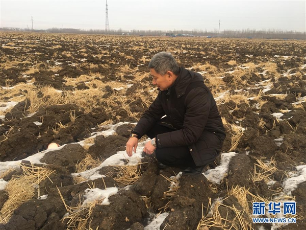 孙斌在公司的农田中查看秸秆还田情况(2月2日摄)。新华社记者 王君宝 摄
