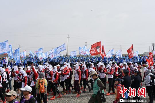 第十四届(中国·瓜州)玄奘之路商学院戈壁挑战赛2日在甘肃酒泉市瓜州县鸣枪开跑。未来三天,来自海内外62家商学院的3000多名EMBA及MBA学员通过团队结组徒步穿越108公里戈壁,深入体验玄奘大师为求真理只身穿越无人戈壁的生死历程,寻找到让生命得以攀援上升的巨大能量。
