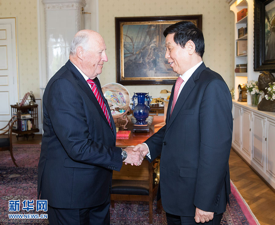会见哈拉尔五世时,栗战书首先转达了习近平主席的亲切问候,并对挪威国庆日致以热烈祝贺。他说,去年国王陛下成功访华,两国元首为新时期中挪关系发展作出战略规划。今年是中挪建交65周年,希望双方以此为契机,在相互尊重、平等相待的基础上,巩固友谊,扩大合作,推动两国关系实现更好发展。哈拉尔五世表示,感谢习近平主席和中国人民对挪威的友好情谊,钦佩中国取得的巨大发展成就。挪威愿在冬季运动等领域加强对华合作,助力中国成功举办2022年冬奥会。