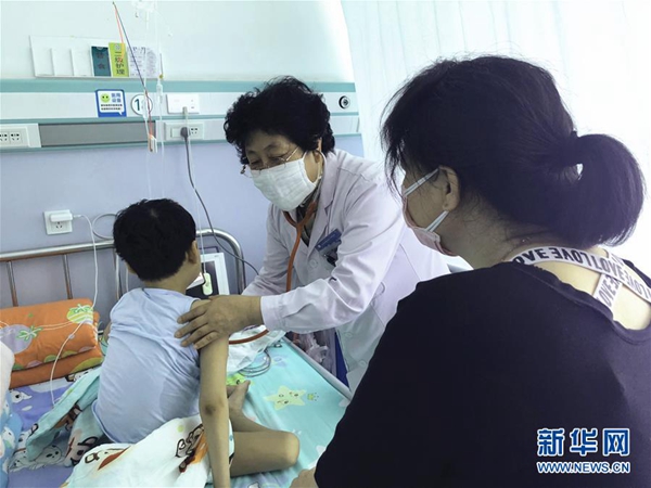 刘建平在给血液病患儿做日常检查(资料照片)。新华社发