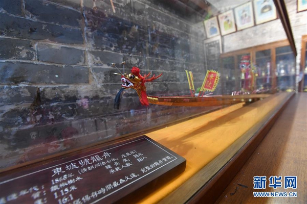 在车陂晴川苏公祠陈列着“东坡号”龙舟的微缩模型,“东坡号”龙舟距今已有150余年(6月4日摄)。新华社记者 刘大伟 摄