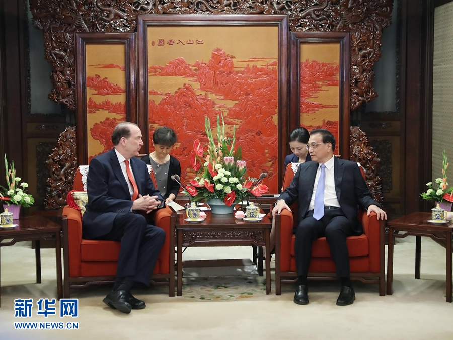 6月11日,国务院总理李克强在北京中南海紫光阁会见世界银行行长马尔帕斯。 新华社记者 刘卫兵 摄