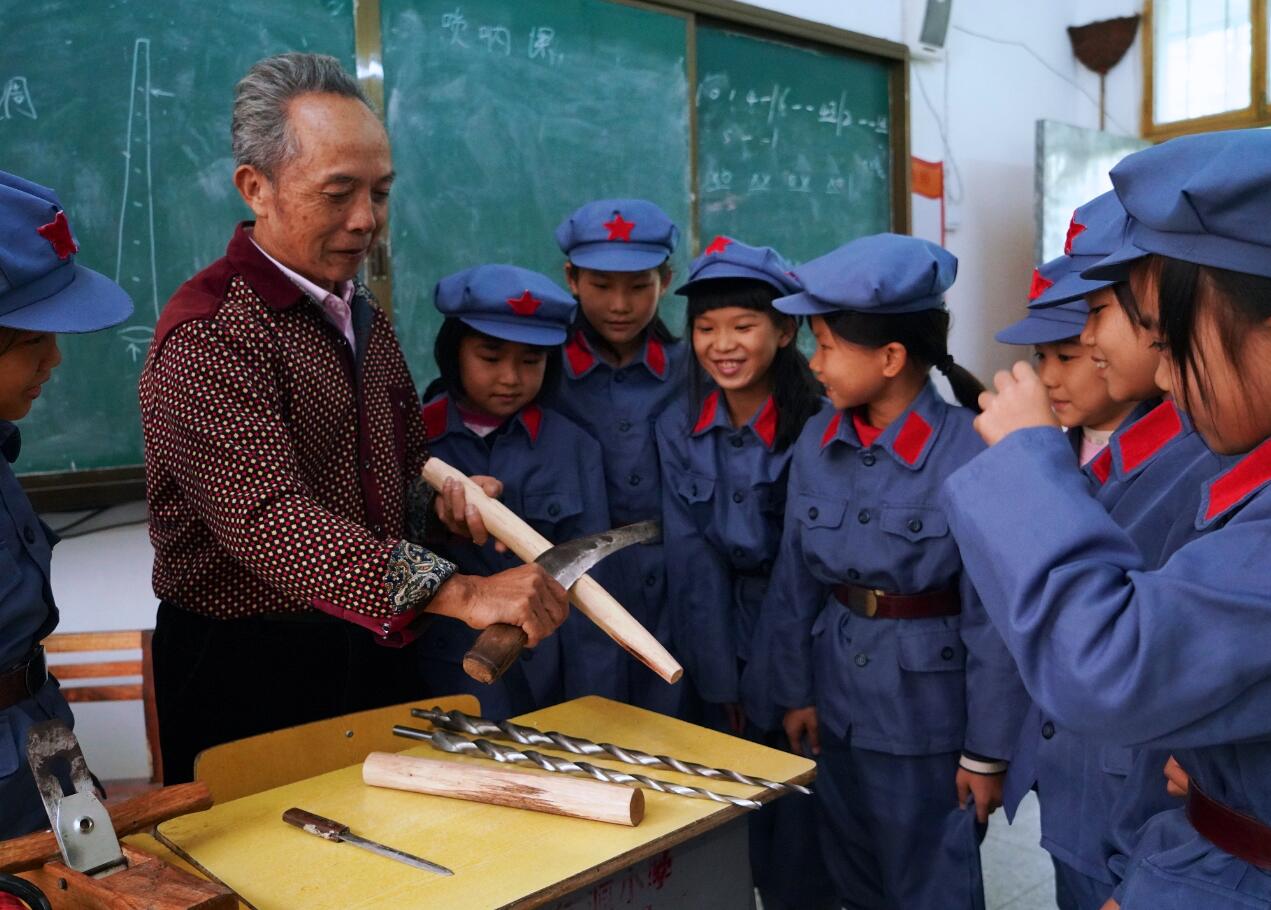 江西省于都县长征源小学邀请国家级非物质文化遗产项目——于都唢呐“公婆吹”艺术传承人肖卿华和徒弟来校,现场演示唢呐制作过程以及吹奏技巧,让学生们近距离领略传统文化的独特魅力。