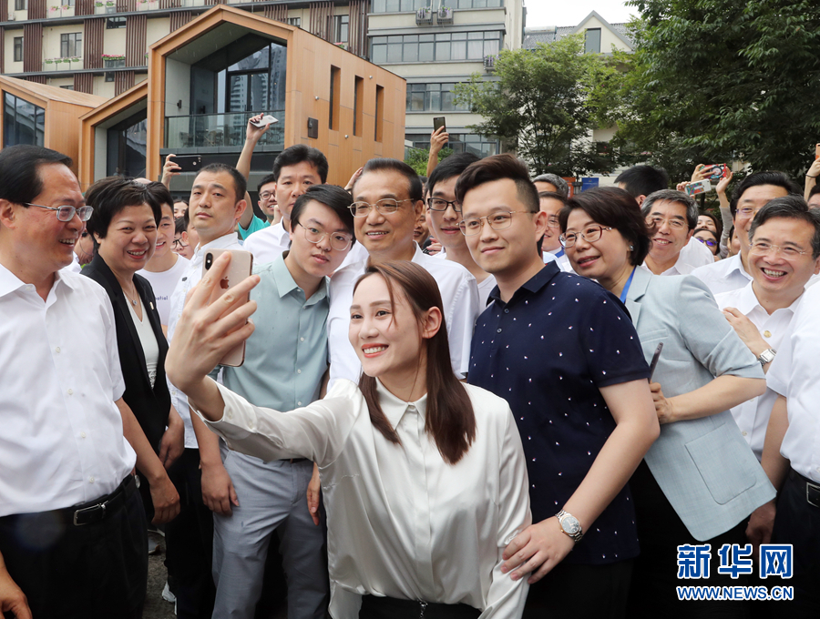 6月12日至13日,中共中央政治局常委、国务院总理李克强在浙江杭州考察。这是6月13日,李克强在梦想小镇与青年创业者在一起。 新华社记者 刘卫兵 摄