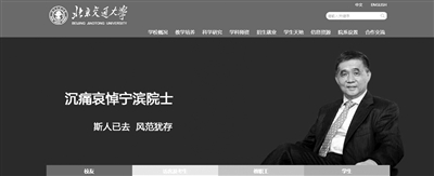 为悼念宁滨,北京交通大学的官网已变成黑色,并发出讣告,其追悼会将于6月18日上午10时,在北京八宝山殡仪馆东礼堂举行。