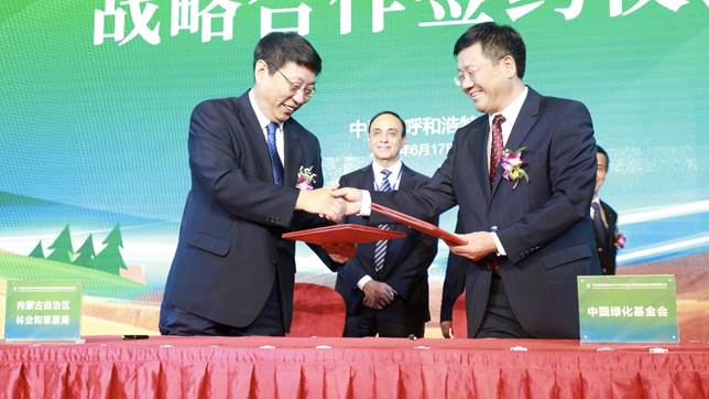 会上,中国绿化基金会与内蒙古自治区林业和草原局共同签约了《战略合作协议书》,将在五年内累计捐赠5亿元人民币,用于内蒙古自治区植树造林和生态修复项目,共同建设祖国北方生态安全屏障。