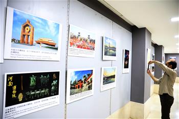 5月24日,幼儿园小朋友在甘肃省平凉市科技活动周“科技大篷车”主题活动上被一款机器人科普展品吸引 杨昕摄