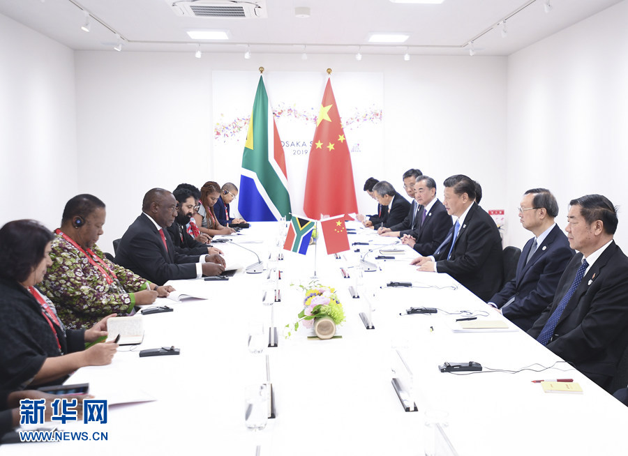 6月28日,国家主席习近平在大阪会见南非总统拉马福萨。 新华社记者 庞兴雷 摄