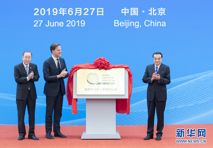 新华社北京6月28日电(记者郑明达)国务院总理李克强27日晚在人民大会堂同荷兰首相吕特、联合国前秘书长潘基文共同出席全球适应中心中国办公室揭牌仪式。