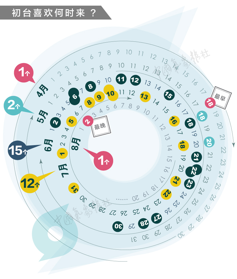 那么初台一般何时来?据统计,近30年来,共有15个初台在6月生成,其中有7个是出现在6月下旬。此外,初台在7月的也不少,有12个。