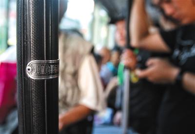 7月12日,455路公交车上的儿童购票身高标识。