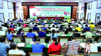 一直以来,东莞市委、市政府高度重视拥军优属工作,连续八次荣获全国双拥模范城称号,双拥工作走在全国全省前列。7月15日,东莞市争创全国双拥模范城“九连冠”工作暨退役军人服务保障体系建设现场推进会在黄江镇召开,强调各项双拥创建工作要做细做实做出成效,在服务水平上下功夫,高质量高标准推进服务保障体系建设。