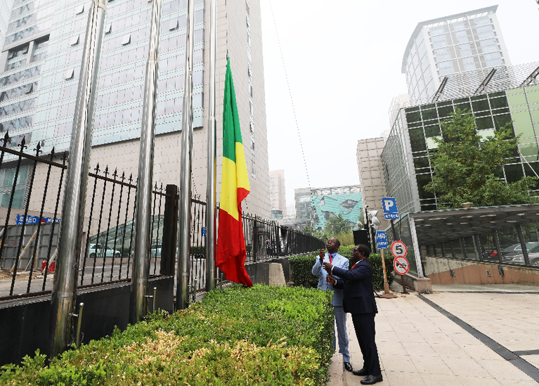 包括牙买加、缅甸、塞拉利昂驻华大使在内的30多位国际竹藤组织成员国驻华使节出席升旗仪式。在与会嘉宾见证下,穆秋姆和达尼埃尔·奥瓦萨在国际竹藤组织总部广场缓缓升起刚果共和国国旗。