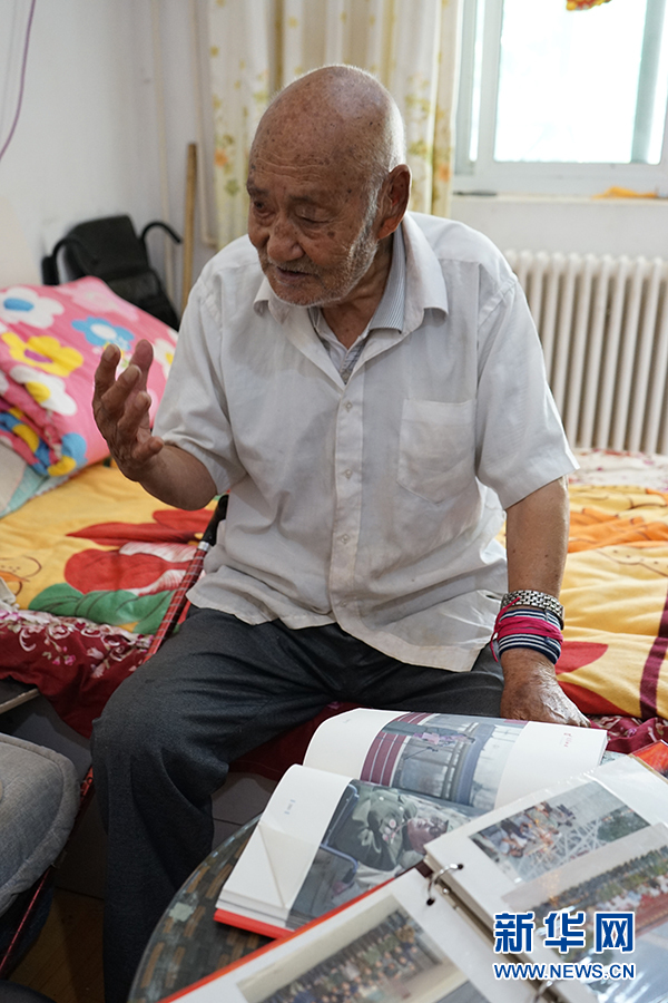 92岁的沙海老兵董银娃向记者介绍当年的情况。 章佳礼 王茜摄