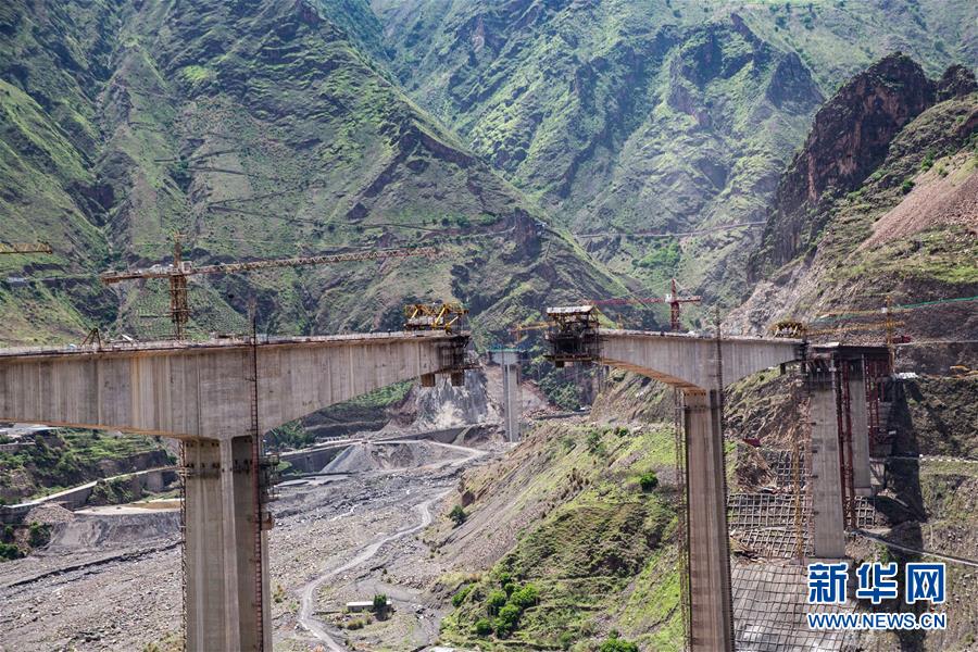 这是7月21日在云南省禄劝县皎平渡拍摄的建设中的跨江大桥。新华社记者 吴壮 摄