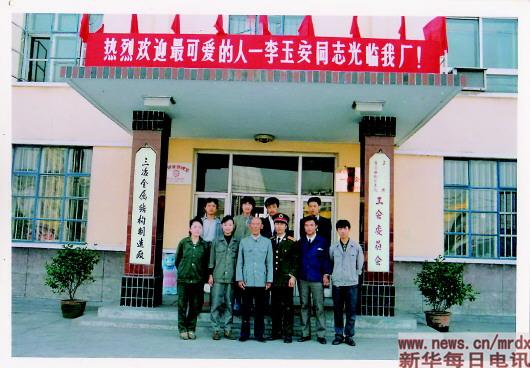 ▲这是李玉安生前到工厂作报告的照片(翻拍照片)。 新华社记者何山摄