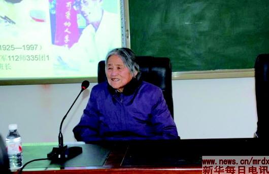▲这是李玉安的老伴在给学生讲述李玉安的故事。 新华社发