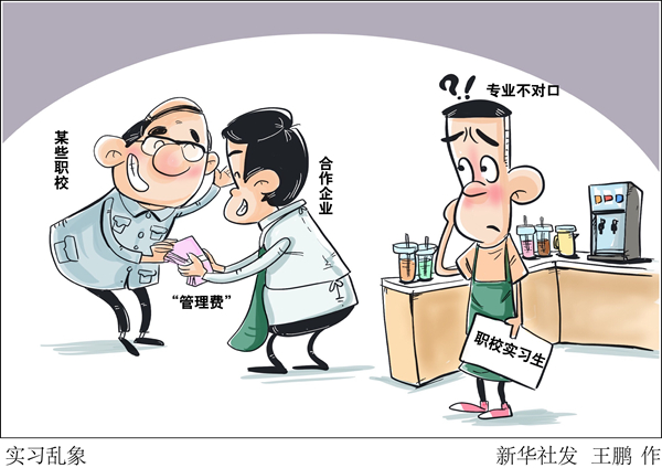 学机电工程的却被安排去卖饮料,送一名学生去企业“实习”能拿上千元“管理费”……实习本是职业学校技能人才培养的重要一环,但记者调查发现,有的职校随意安排与专业不相关、不相近的实习岗位,有的职校把学生当成廉价劳动力“出卖”给企业。