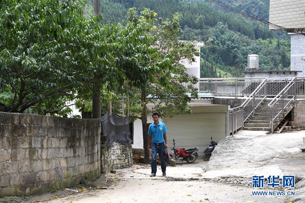 杨杰兴在广西乐业县百坭村走访(8月1日摄)。新华社记者 周华 摄