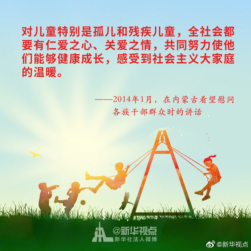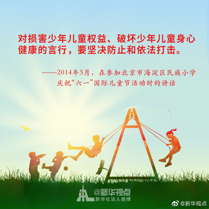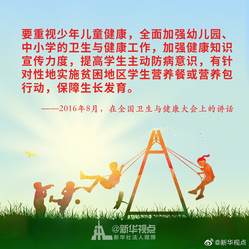 少年儿童是祖国的花朵,民族的希望。幼有所育,让每一名少年儿童都能伴随着时代的脚步茁壮成长,是全社会共同的心愿。习近平总书记始终关心少年儿童的身体健康和成长成才。党的十八大以来,习近平总书记这样说⬇