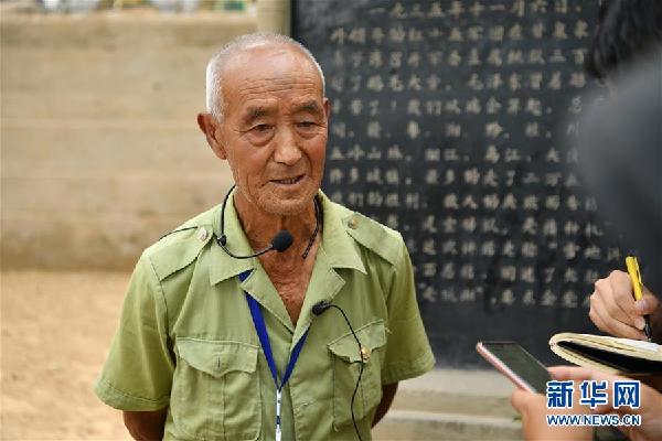 8月8日,83岁的甘泉县象鼻子湾村村民贾生贵讲述当年“雪地讲话”的情形。新华社记者 张博文 摄