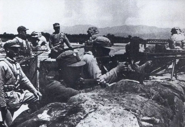 ↑1937年7月7日,驻华日军发动“七七事变”(又称“卢沟桥事变”),开始全面侵华。这是中国军队在卢沟桥抗击日军的进攻。新华社发