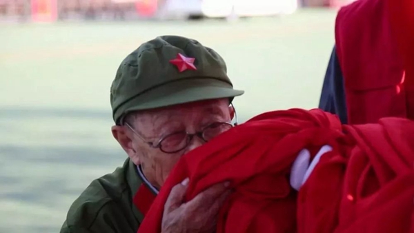 ↑2005年,时年91岁的日本侵华老兵本多立太郎双膝跪在卢沟桥上,为自己在侵华战争中的罪行谢罪。