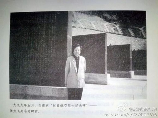 ↑南京抗日航空烈士公墓石碑上刻有张大飞的名字。