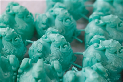 雕刻所用的刀钻头转速极快,会产生较高的热量。为了不破坏玉石,雕刻过程中需要用一根纤细的水管对着玉石喷水,起到降温的作用。先粗雕,再细雕,再经过抛光,才能完成。