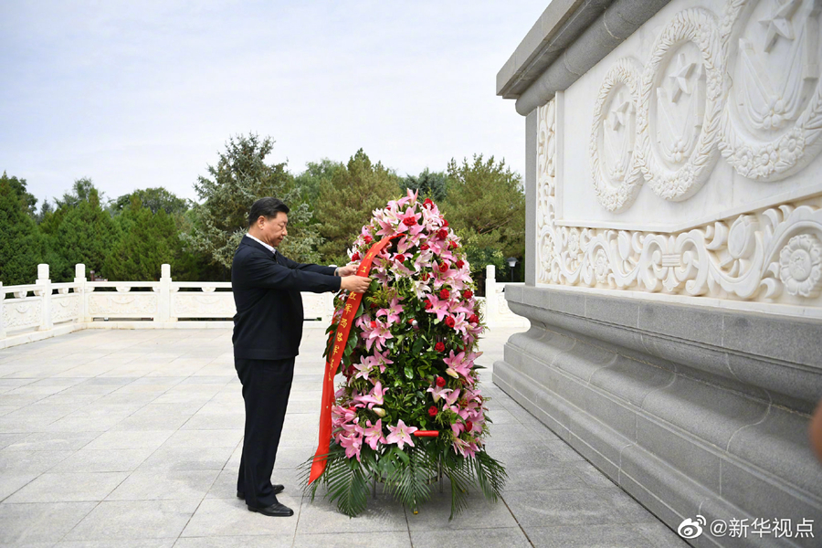 习近平总书记20日上午来到甘肃省张掖市高台县,瞻仰中国工农红军西路军纪念碑和阵亡烈士公墓,向西路军革命先烈敬献花篮,并参观了中国工农红军西路军纪念馆。(文字记者:张晓松、朱基钗 摄影记者:鞠鹏、谢环驰)