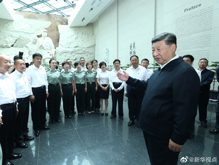 习近平总书记20日来到张掖市高台县,参观了中国工农红军西路军纪念馆。一件件实物、一张张图片,再现了当年西路军英勇奋战、血决祁连的那段悲壮历程。习近平仔细端详,深情回顾西路军的英雄事迹。他强调,我心里一直牵挂西路军历史和牺牲的将士,他们作出的重大的不可替代、不可磨灭的贡献,永载史册。他们展现了我们党的革命精神、奋斗精神,体现了红军精神、长征精神,我们要讲好党的故事、红军的故事、西路军的故事,把红色基因一代代传承下去。(文字记者:张晓松、朱基钗 摄影记者:鞠鹏、谢环驰)