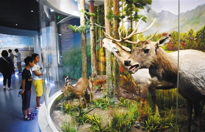 昨日(24日),小朋友在麋鹿苑参观《麋鹿东归》常设主题展。新京报记者 李木易 摄