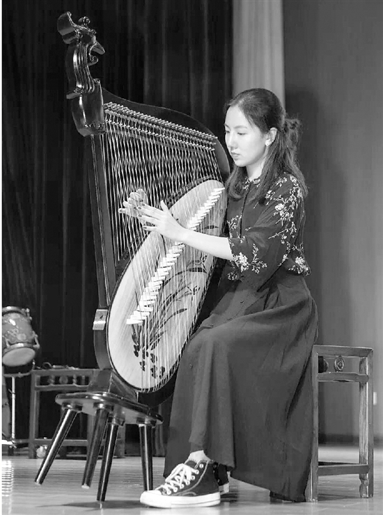 记者采访发现,这位主修箜篌的姑娘是棵独苗苗,学校这个专业只有她一个人。